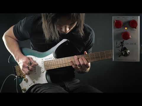 The Archer is a versatile overdrive/boost with amazing headroom that is designed to help you cut through the mix. The Archer is sort of a two-in-one pedal. It can be used as just a clean boost by turning the gain all the way down. As you introduce gain it will attenuate the clean signal but there is a magical blend in between that you will find. Experiment with the settings and be careful with the output.this dude is loud!Output: The volume control is very powerful and drives fairly hard relatively early. This allows you to hit the front end of an amp or pedal to get very aggressive or crystal clear.Treble: The Treble control is a very effective EQ that goes from dark to a very \"chimey\", bright tone. It\'s great to create that midrange clarity.Gain: The gain also acts as a mixer control between the clean boost and the gain. Turn the gain all the way down and your output becomes the volume for all clean boost.Start blending in the gain control and it will simultaneously reduce clean volume and introduce gain...somewhere in the middle is the sweet spot or mix of the two.Power SupplyAll J. Rockett Audio Designs pedals operate off of the standard BOSS type 9 volt adapter or a single 9-volt battery. The power input is a 5.5 mm x 2.1 mm jack with the positive voltage on the outer sleeve. Using an external power supply will automatically disconnect the battery. Disconnect the input jack to preserve battery life when not in use or when not used with an appropriate, external power supply.